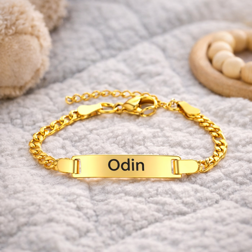 Slank stalen kinderarmbandje inclusief het graveren van een naam en/of datum. Dit kinderarmbandje...