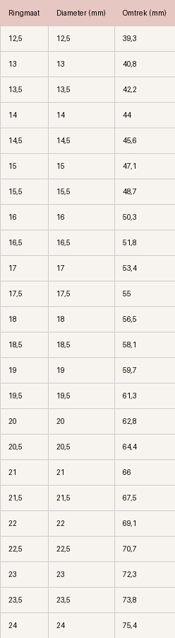Het aantal millimeters is jouw ringmaat