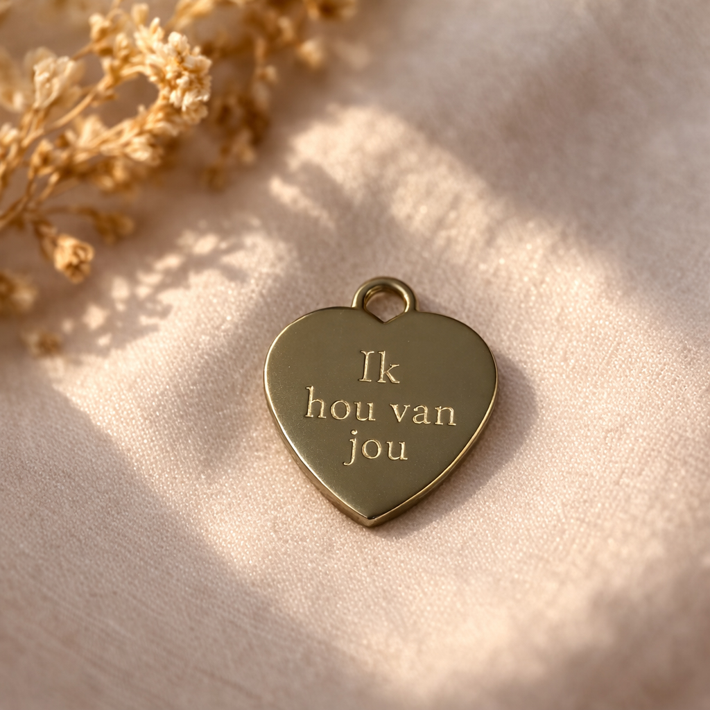 Deze elegante goudkleurige, metalen hartvormige hanger is een tijdloos sieraad met een persoonlijke betekenis. Ideaal als cadeau voor een geliefde, bij een geboorte, jubileum of gewoon om iemand te laten weten hoeveel je om hem of haar geeft. Dankzij de hoogwaardige afwerking en de mogelijkheid tot een persoonlijke gravure wordt deze hanger écht uniek.