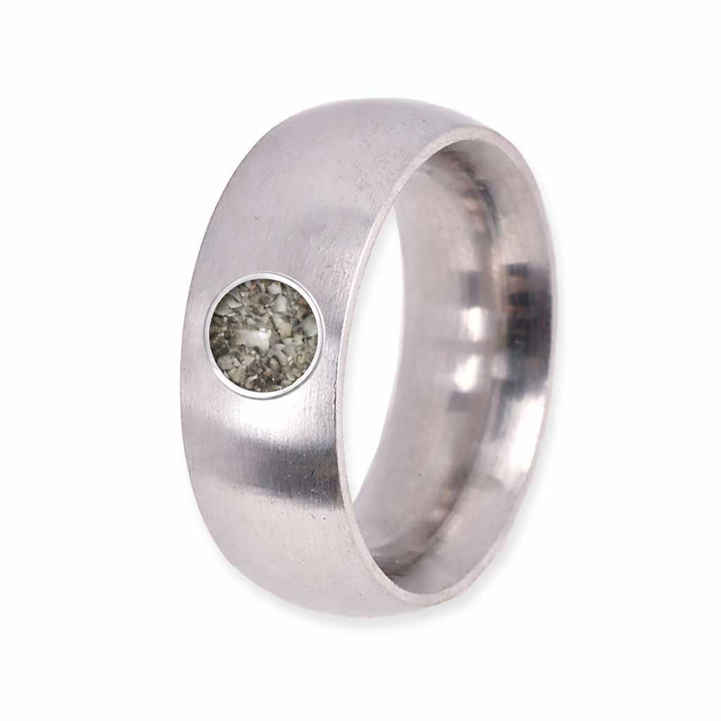 Het bijzondere ontwerp van deze zilveren ring combineert een matte, geborstelde zilveren baan met...