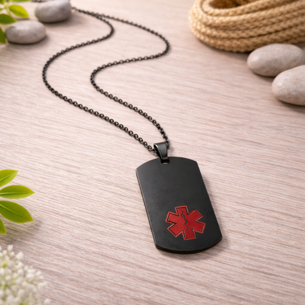 Deze stijlvolle zwarte SOS hanger van 22x36 mm is niet zomaar een sieraad – het is een essentieel hulpmiddel dat in noodsituaties van levensbelang kan zijn. Speciaal ontworpen voor het graveren van medische gegevens, zodat hulpverleners direct de juiste informatie bij de hand hebben wanneer elke seconde telt. Denk aan allergieën, medicatiegebruik, een aandoening of een noodcontact. Met een duidelijke gravure op zowel de voor- als achterzijde draag je deze cruciale informatie altijd bij je, discreet en veilig.