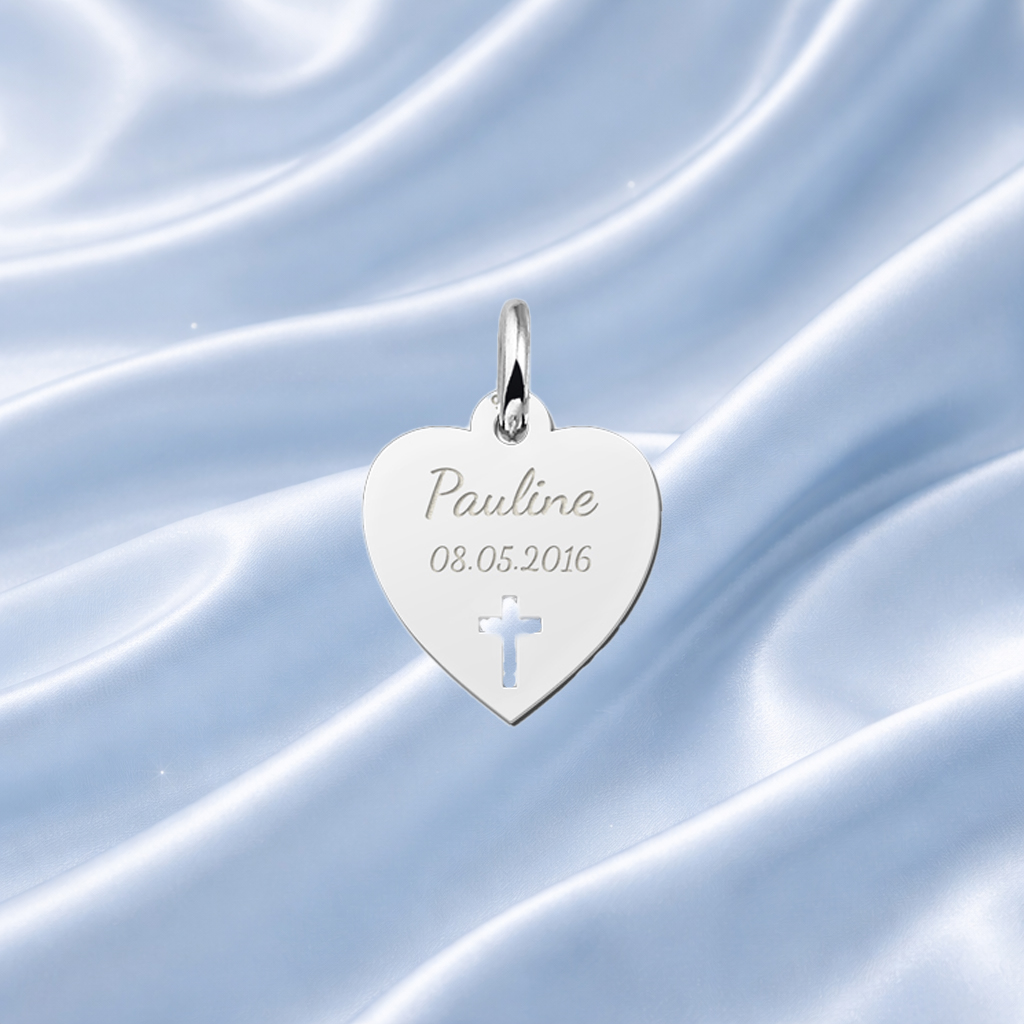 Alternatieve artikelen voor Zilveren hart hanger met kruis – communie met naamgravure