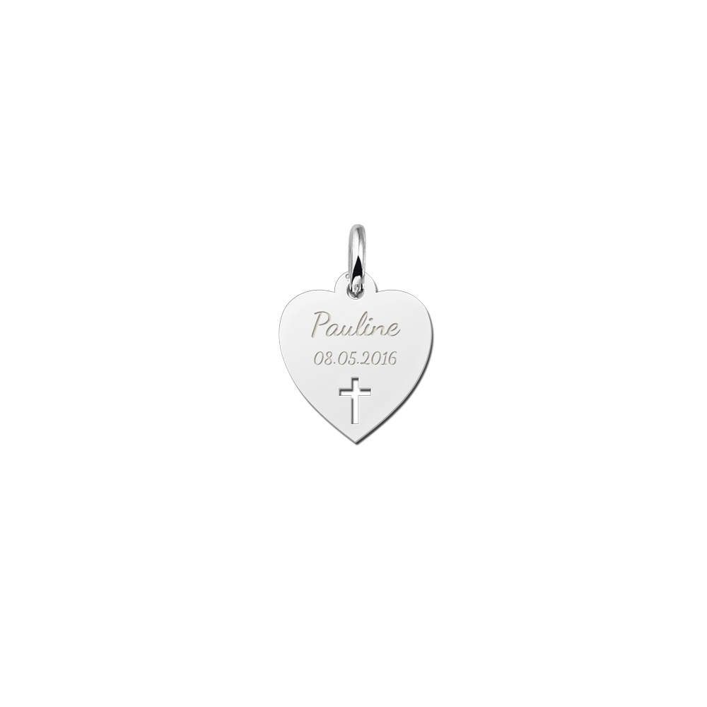 Zilveren Communie Hart met Kruis – Graveerbaar