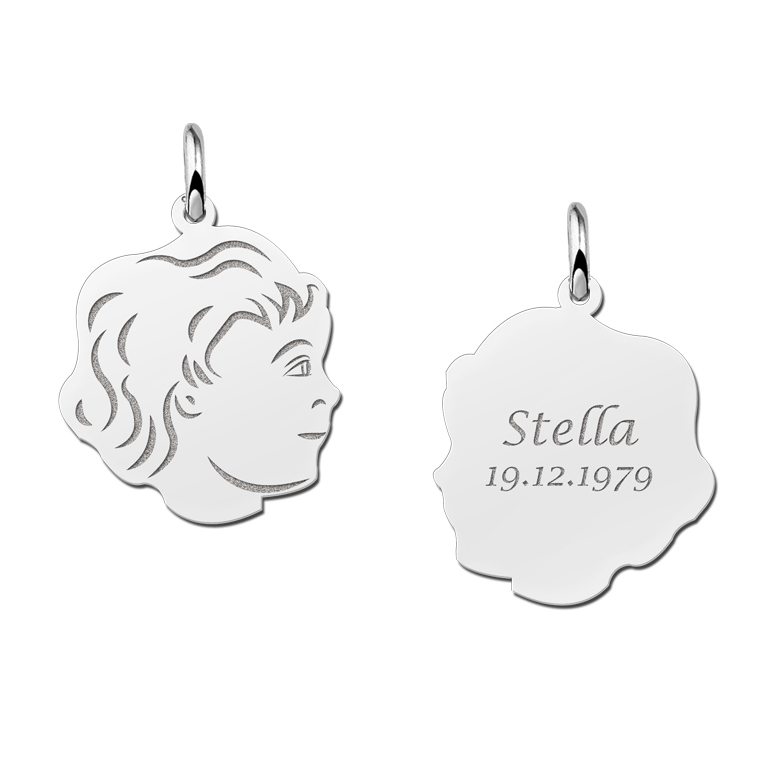 De zilveren hanger is gemaakt van 925 sterling zilver en is 17 mm breed en 18 mm hoog. De dikte is 0,7 mm.