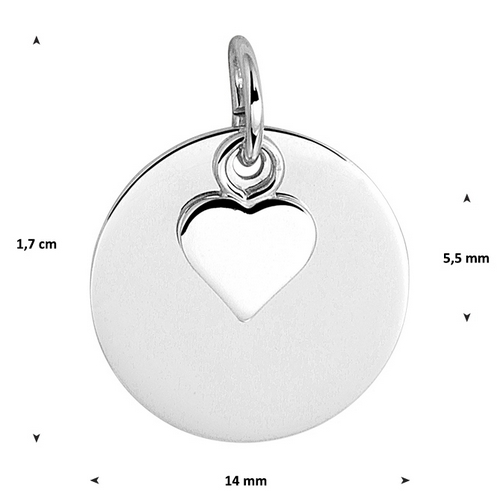 De ronde hanger heeft een afmeting van 20mm en is voorzien van twee hartjes in het midden van...