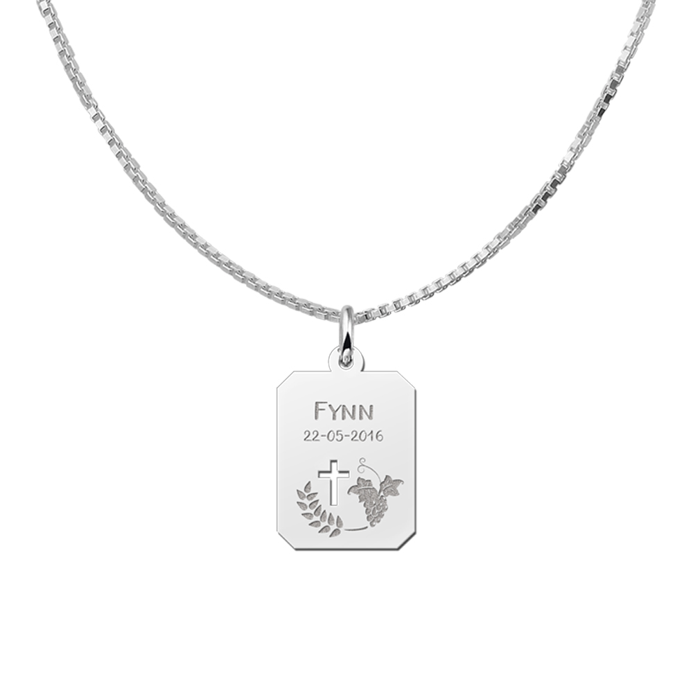 Combineer deze zilveren communiehanger met een bijpassende zilveren ketting, zodat het sieraad meteen gedragen kan worden. In onze collectie vind je verschillende kettingen die perfect bij deze hanger passen.