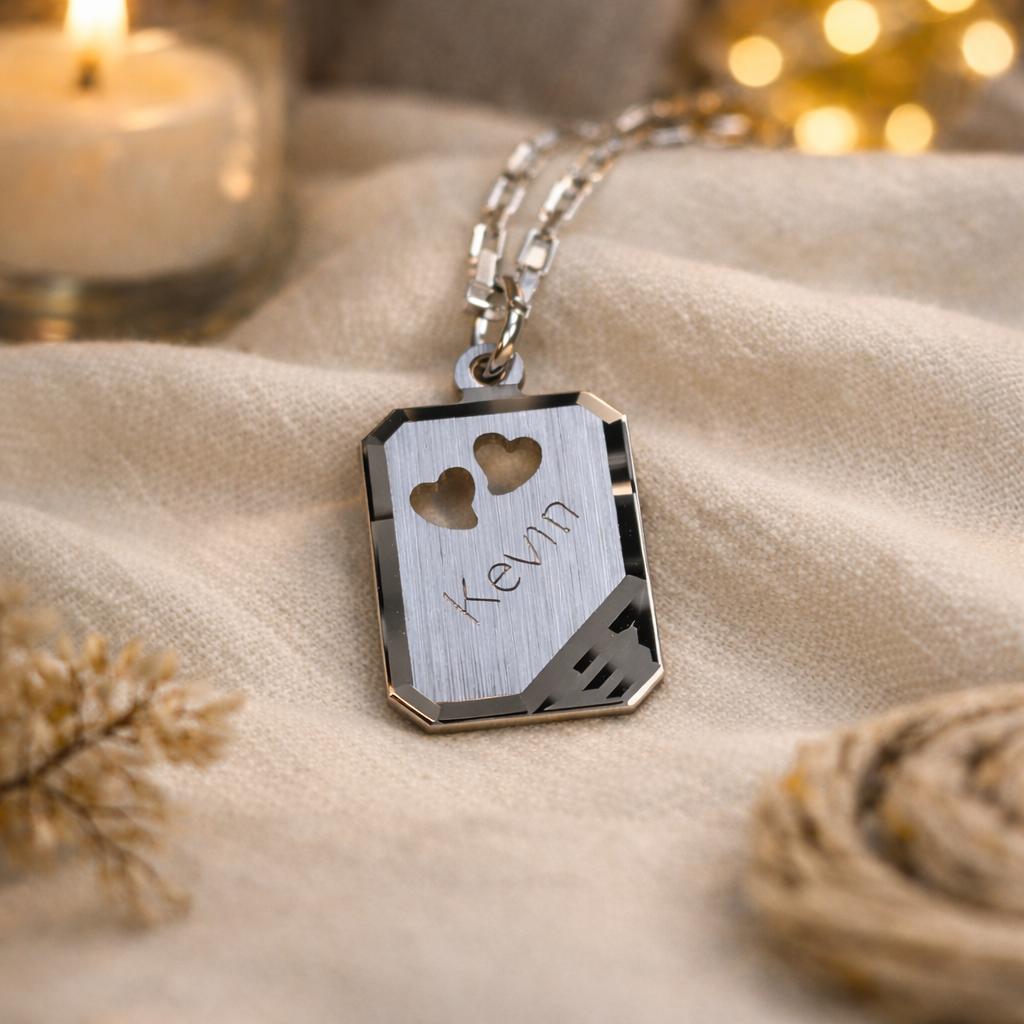 De perfecte details maken deze rechthoekige ketting hanger enorm gewild! De massieve hanger heeft een matte binnenkant, omrand met een glanzende lijn. Daarnaast hebben wij onderin drie bijpassende diagonale lijnen toegevoegd voor een elegant effect. De twee hartjes bovenin maken de bedel compleet!
