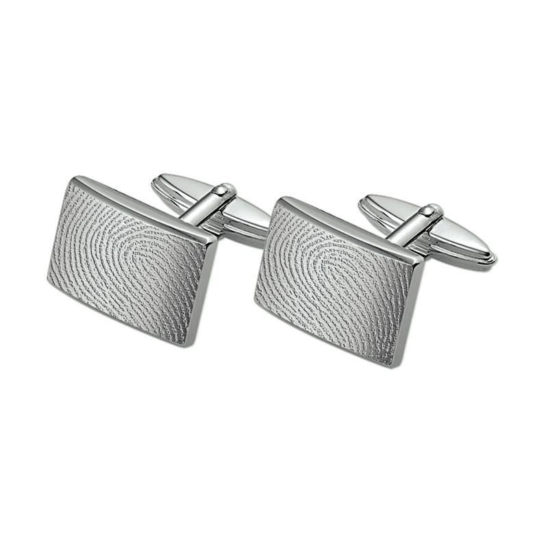 Strakke rechthoekige roestvrij stalen manchetknopen inclusief het graveren van een vingerafdruk....