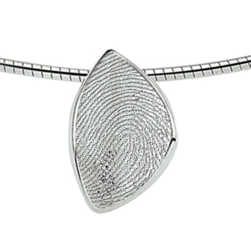 Deze prachtige vingerafdrukhanger kan worden gegraveerd met de door u geleverde afdruk. Dit kan de vingerafdruk van uw kind zijn, of van uw partner. Daarnaast is het ook mogelijk om de afdruk(ken) van een handpalm, babyvoetje of dierenpoot op schaal in de afdrukhanger te laten graveren.